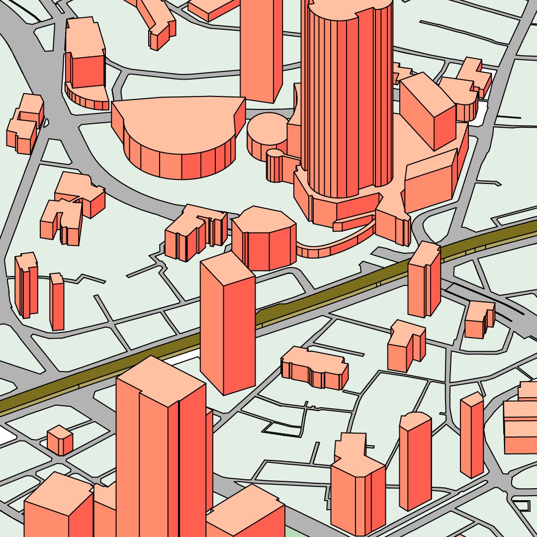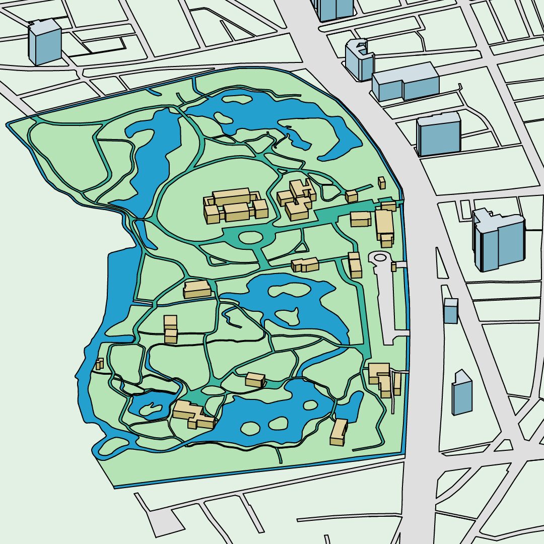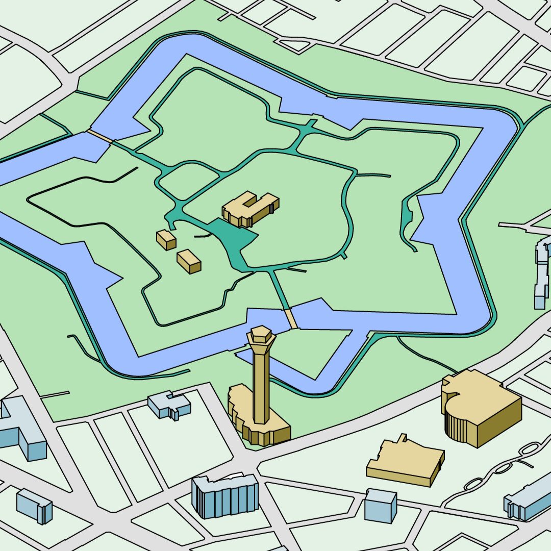 ラフ案にご承認いただいた後、詳細なモデリングや着色などを行い、高品質な立体地図イラストとして仕上げていきます。